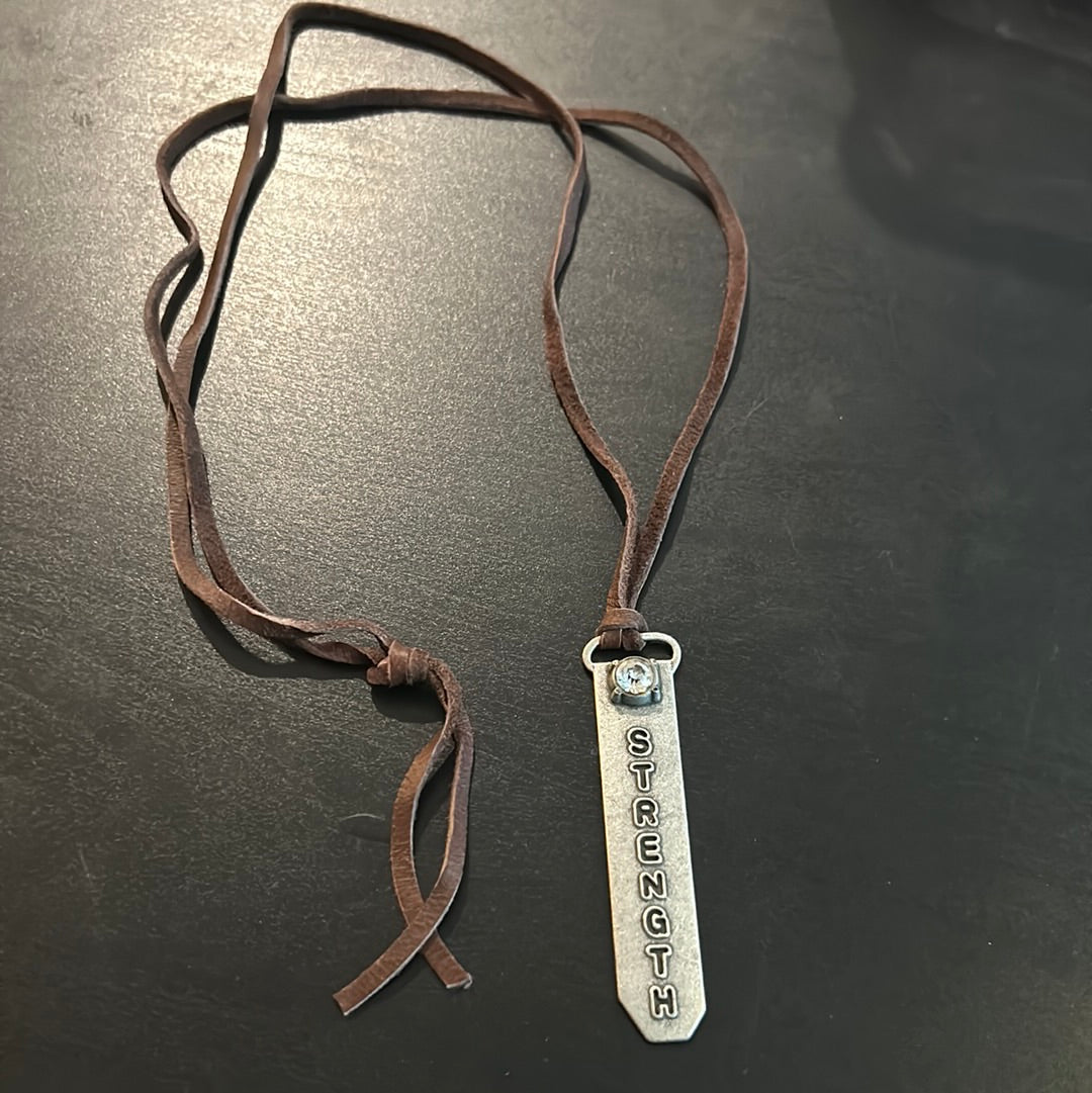 Black leather w/silver metal cowgirl/cowboy boot necklace *Unisex