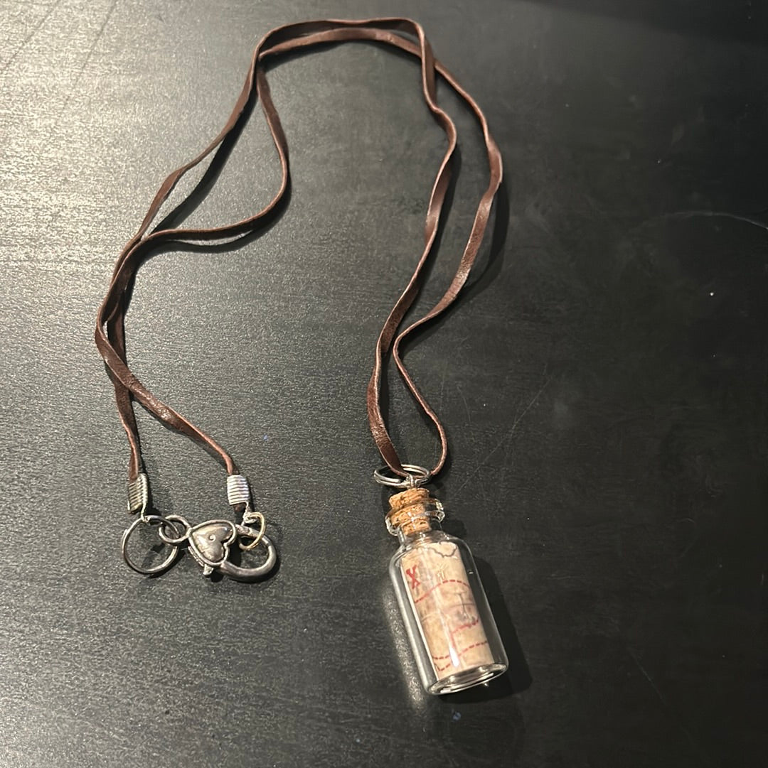 Brown leather “Goonies” Inspired X Marks the Spot Map Glass bottle necklace
