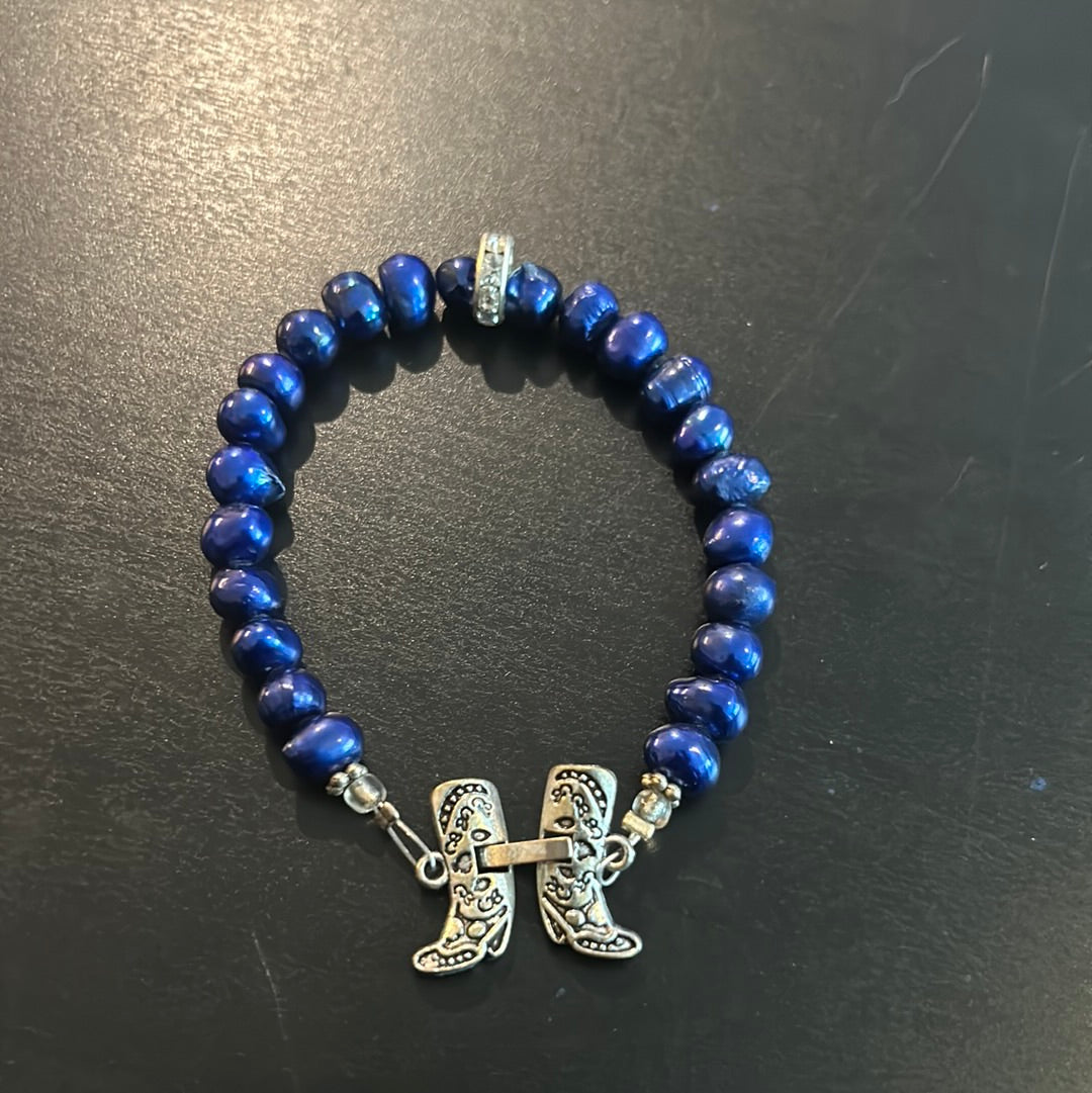 Cobalt Blue pearls q/silver merlot cowgirl boots clasp