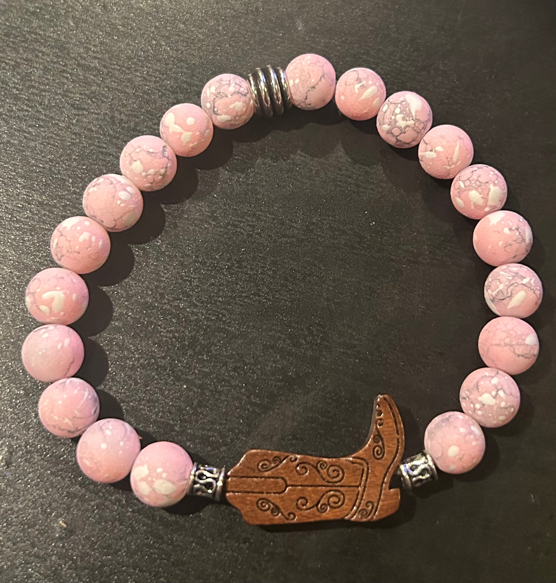 Crackled pastel pink w/wooden cowgirl boot
