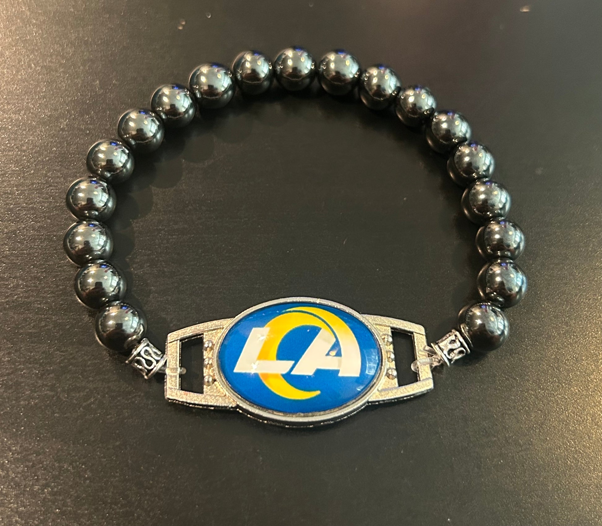 Hematite metal stones w/LA Chargers NFL fan game bracelet