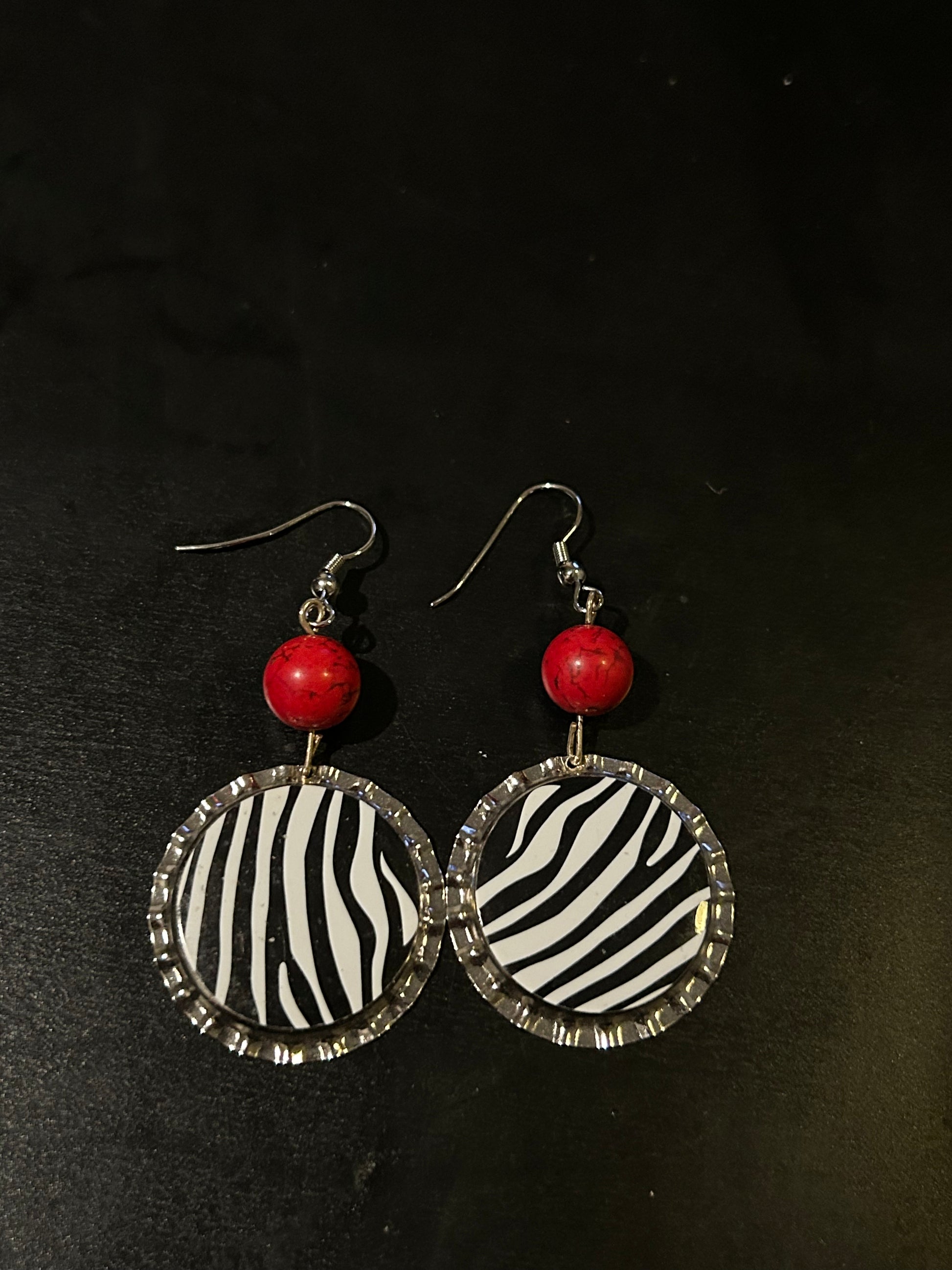 Zebra bottle cap earrings